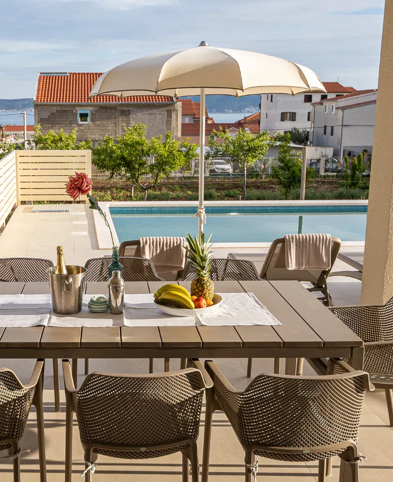Brand new, ground floor Luxury Apartment Diana invites you to discover the beaming jewel of the Adriatic through a unique experience of luxurious accommodation and exclusive services. A luxury apartment and Villa Diana, located in the immediate vicinity, are recognized for unequaled splendor, an oasis of tranquility amid the vibrancy of Kaštel Stari. Luxury Apartment Diana is a unique blend of place and space, an oasis-like experience amid the energy of Dalmatia. With our unique location and the mix of contemporary and bohemian inspired interiors and an outdoor area around the private swimming pool, with a sun deck and dining area, Luxury Apartment Diana is the sought-after destination for those wishing to indulge in the Mediterranean lifestyle.